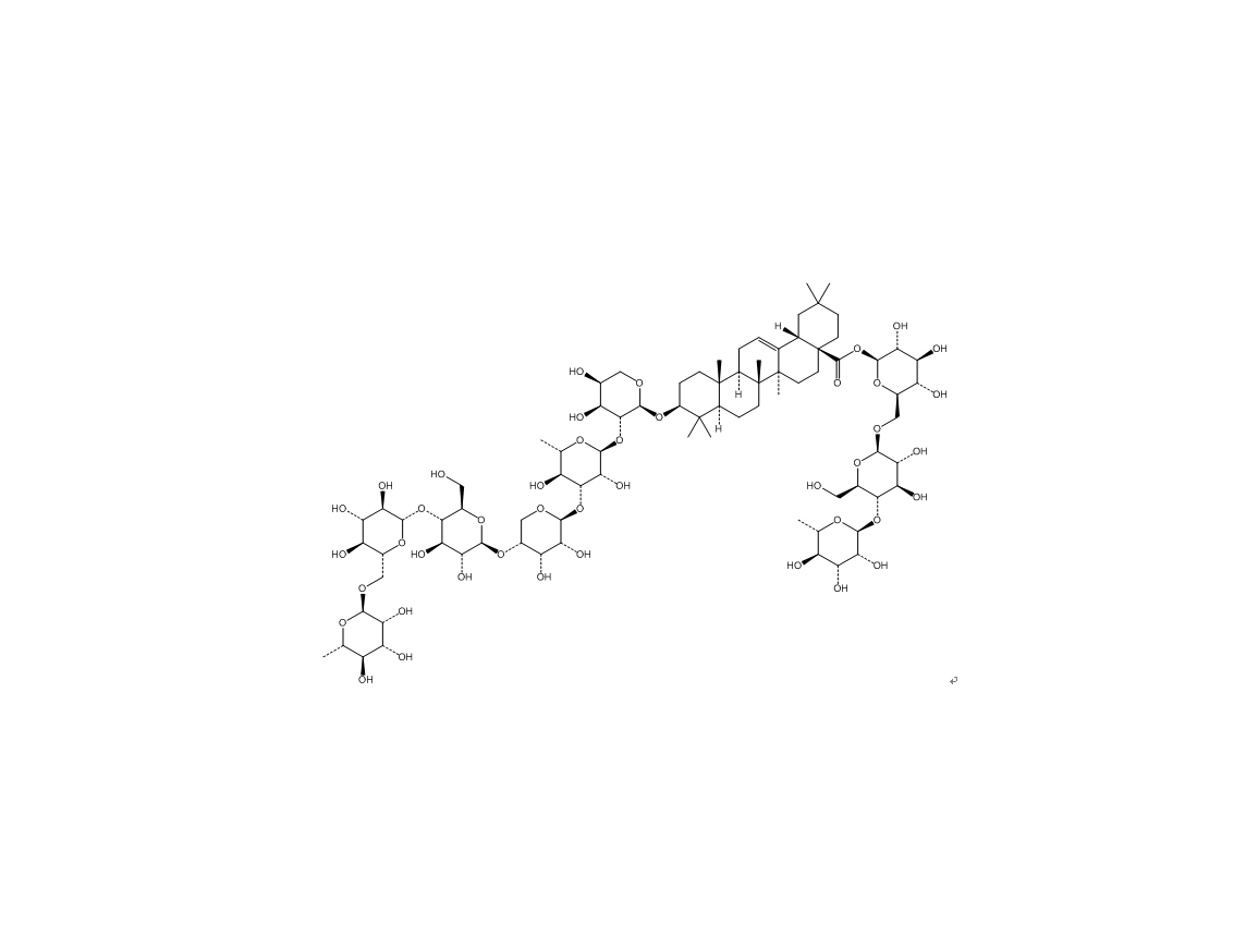 【英文別稱】 Olean-12-en-28-oicacid,3-[(O-6-deoxy-α-L-mannopyranosyl-(1→6)-O-β-D-glucopyranosyl-(1→4)-O-β-D-glucopyranosyl-(1→4)-O-β-D-ribopyranosyl-(1→3)-O-6-dChemicalbookeoxy-α-L-mannopyranosyl-(1→2)-α-L-arabinopyranosyl)oxy]-,O-6-deoxy-α-L-mannopyranosyl-(1→4)-O-β-D-glucopyranosyl-(1→6)-β-D-glucopyranosylester,(3β)-