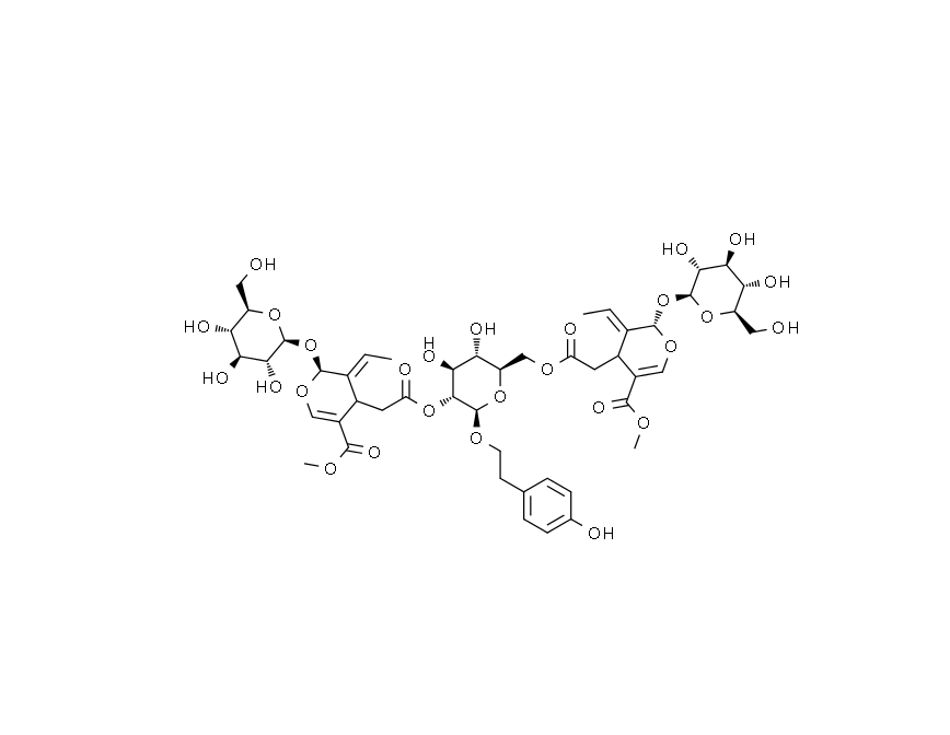 【英文別稱】 2-(4-Hydroxyphenyl)ethyl 2,6-bis-O-{[(2S,3E,4S)-3-ethylidene-2-(β-D-glucopyranosyloxy)-5-(methoxycarbonyl)-3,4-dihydro-2H-pyran-4-yl]acetyl}-β-D-glucopyranoside