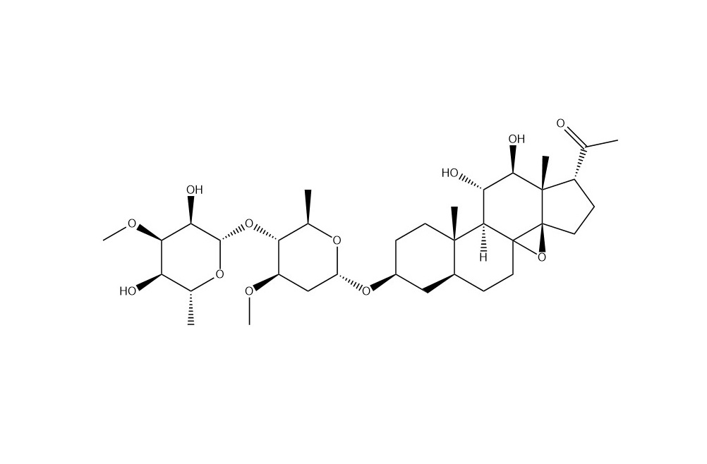 【英文別稱】 (3β,5α,11α,12β,14β,17α)-11,12-Dihydroxy-20-oxo-8,14-epoxypregnan- 3-yl 2,6-dideoxy-4-O-(6-deoxy-3-O-methyl-β-D-allopyranosyl)-3-O-m ethyl-β-D-arabino-hexopyranoside