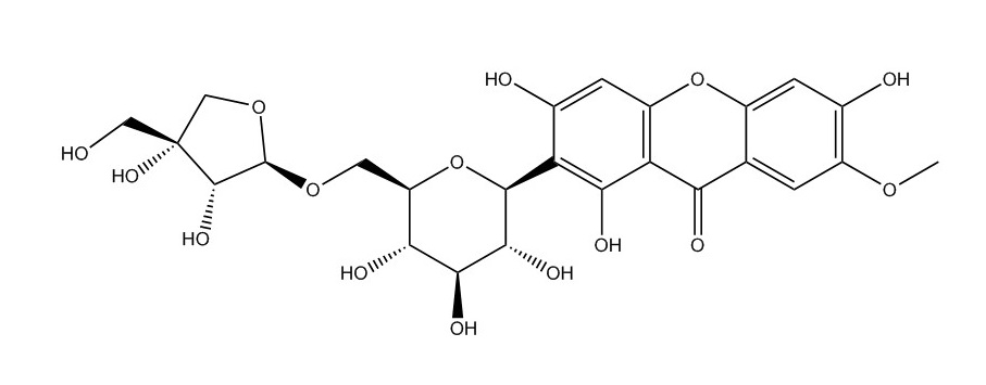 【英文別稱】 2-(6-O-D-Apio-beta-D-furanosyl-beta-D-glucopyranosyl)-1,3,6-trihydroxy-7-methoxy-9H-xanthen-9-one