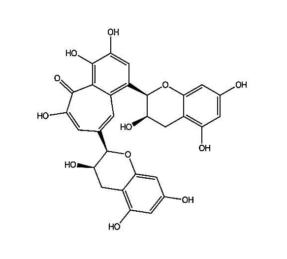 【英文別稱】 3,4,6-Trihydroxy-1,8-bis(3,4-dihydro-3α,5,7-trihydroxy-2H-1-benzopyran-2α-yl)-5H-benzocycloheptene-5-one